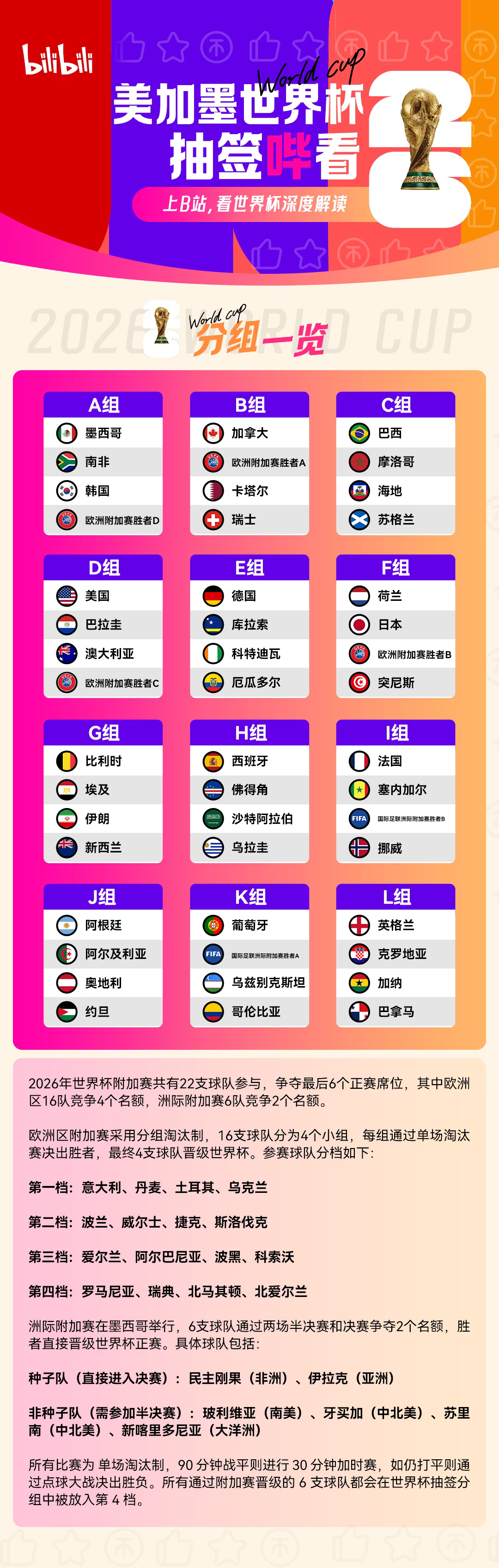 送完祈福,小编跟内行说一个进军音问,好意思墨加世界杯分组完成啦,原先32个国度形成48个国度,对足球感意思意思的内行不错望望。